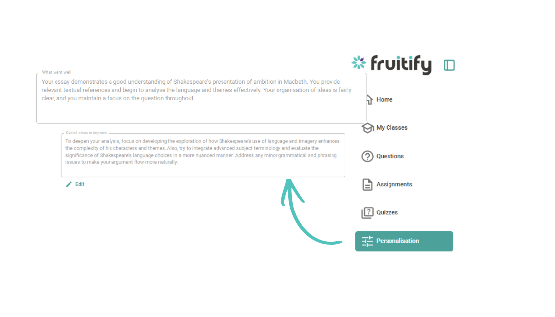 Not at all. Fruitify enhances the teacher’s role by automating repetitive tasks like marking and generating initial feedback. Teachers stay in control, and their judgment is always central to the process. The result is less admin, more time for teaching.